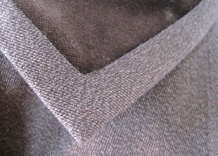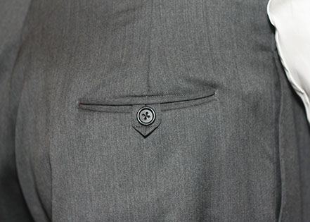 Hand tailored and machine sewn doubled piped back and side pockets.